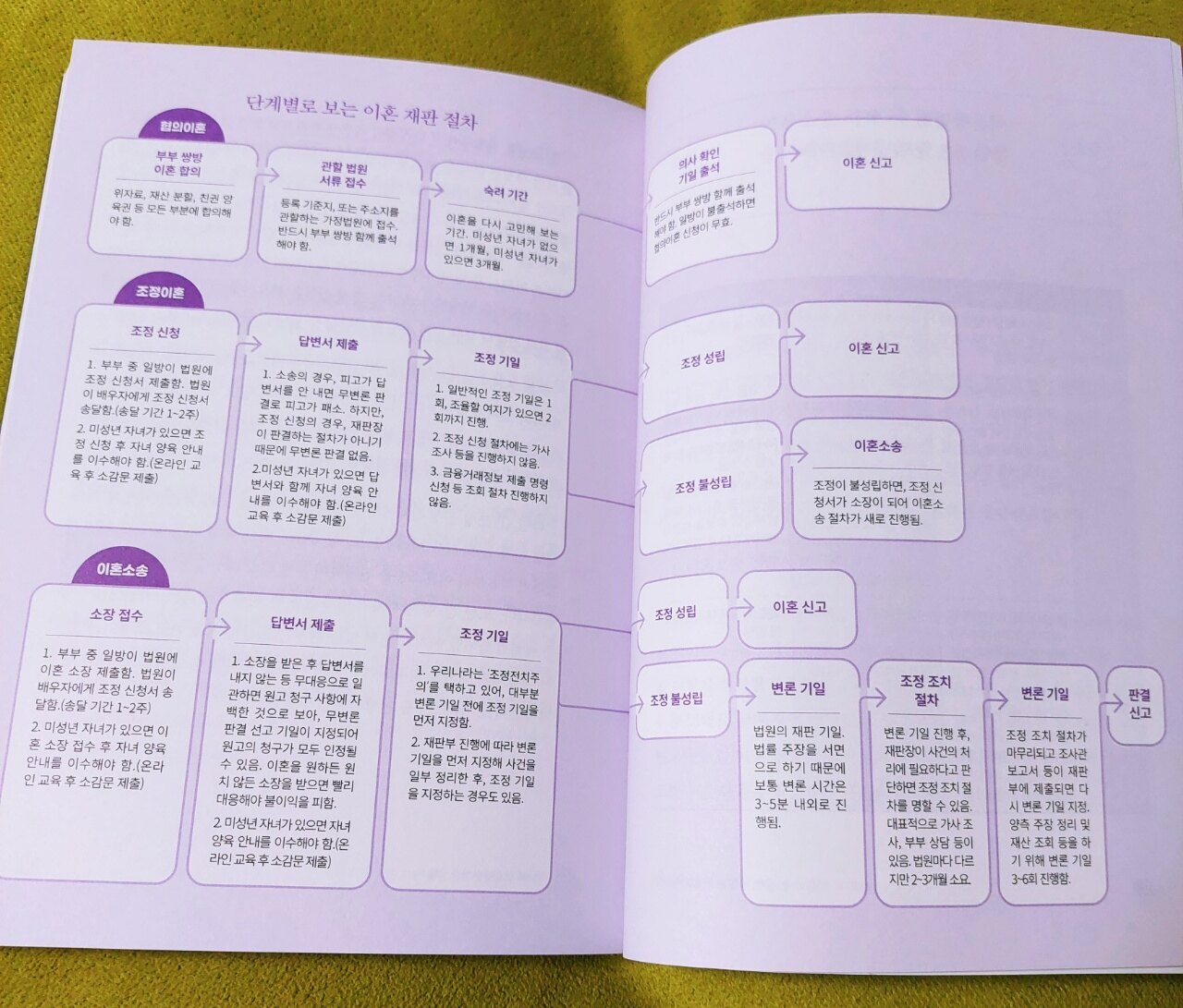 단계별로 이혼 재판 절차가 깔끔하게 정리되어 있습니다