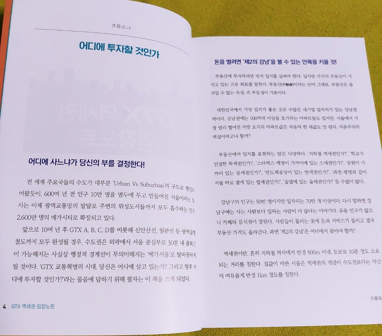 부동산에서 입지가 중요하다는건 알지만 가격이 너무 다르니 발품도 많이 팔고 정보도 많이 얻어야 조금이라도 싼 가격에 구입을 할 수 있습니다 같은 가격으로 산 두 채의 아파트가 어느 순간 매매가 1.5배~2배 차이가 납니다 후회하죠..아..같은 장소에 두 채를 살걸.. 하지만 살 당시에는 예측이 힘들었습니다 오히려 신도시 얘기가 나왔던 곳을 더 기대했는데 신도시 계획이 다른 곳으로 이동해버린거죠 계속 바뀌는 정책을 다 파악할 수는 없지만 손해를 최소화하고자 그만큼 알아보고 노력해야 합니다 이 책은 부동산에 관심이 있다면 꼭 읽어봐야하는 도서입니다 이미 오를대로 오른 강남 진출은 부담이 되고 여력이 안되니 GTX 역세권을 노려야 하는데요 지하철 역세권에서 GTX 역세권으로 눈을 돌려야 됩니다 지하철 역세권이 좋은건 알지만 이미 가격이 높게 형성되어 있기에 향후 역세권으로 부상할 가능성이 있는 곳들을 알아봅니다 이 책은 서울을 중심으로 GTX 노선과 노선별 단축 예상시간을 알려주는데 지하철의 5~6분의 1로 시간이 단축됩니다 요금이 얼마에 책정되는지도 중요한데 예상 가격이 생각보다 낮습니다 이 가격이면 버스나 지하철보다 훨씬 이득입니다 가격이 적절하게 정해진다면 부동산 시장에 큰 변화가 올 것 같습니다 지역별로 역세권 개발 사업을 알려주는데 잘 이용하면 좋은 입지에서 수익을 낼 수 있겠습니다 이미 역세권인 곳들을 비교 분석해서 차이가 나는 이유도 알려주는데 여러 가지가 복합적으로 얽혀있기에 조건들을 충족시키는 곳을 찾고 발전 가능성을 따져봐야 합니다 개통 예정인 곳들을 잘 알아보고 꼼꼼히 준비해야겠습니다 이 책은 꼭 읽어보시길 추천합니다 출판사로부터 도서를 제공받아 작성한 솔직 후기입니다
