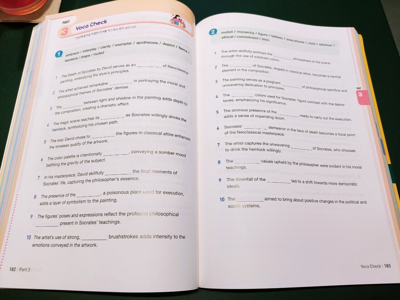 설명이 잘 되어 있지만 지문 자체가 난이도가 높아서 천천히 풀고 있습니다PART 3에서는 PART 1을 통해 학습한 본문의 어휘를 문맥 속에서 활용할 수 있는 빈칸 채우기 문제를 담았습니다