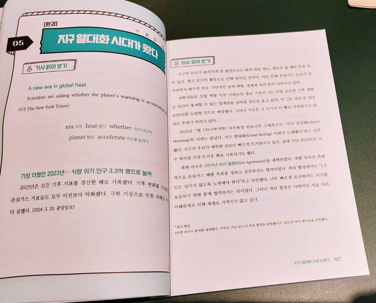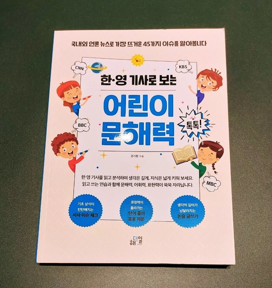 <한·영 기사로 보는 어린이 문해력 톡톡!>은 지금 아이들이 알아야 되는 45가지 기사로 이루어진 책입니다