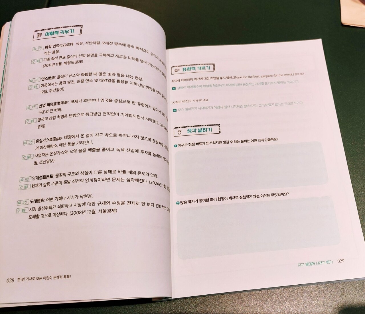 기사에는 어려운 어휘들이 많이 나오는데 의미와 한자어까지 깔끔하게 정리가 잘 되어 있어서 아이들이 읽고 이해하기 편했고 다양한 어휘를 배우며 표현력도 좋아졌습니다