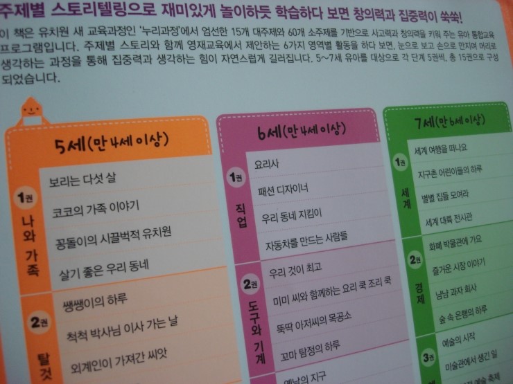 만5세/ 만6세/ 만7세로 나뉘어져있는 책으로