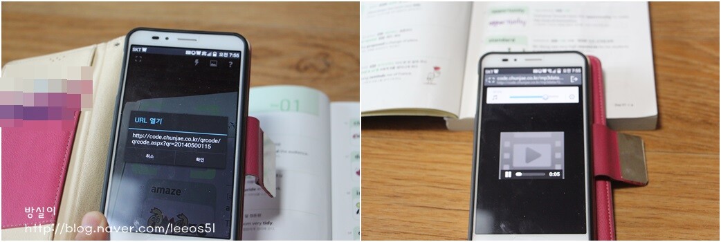 바로 큐알코드를 타고 들어가면서 해당 페이지에 단어와 예문을 모두 듣고 따라 할수