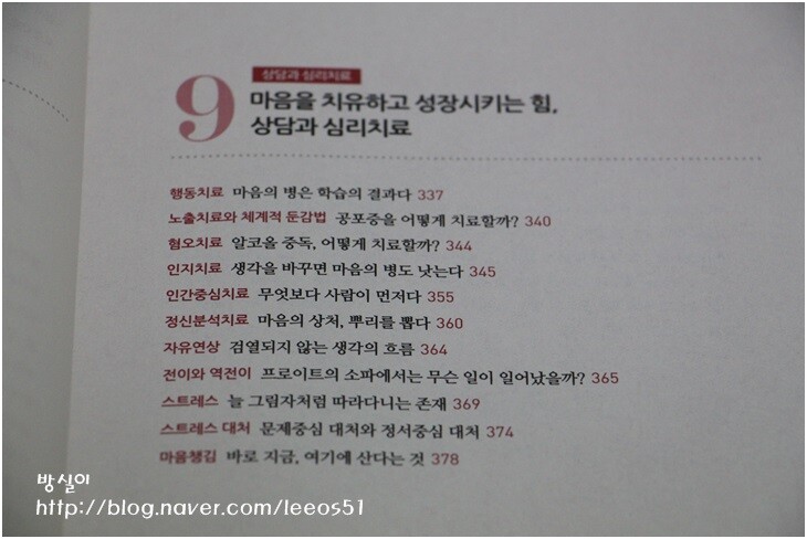 이 심리학 책은 총 9단원으로 나눠어서 목차를