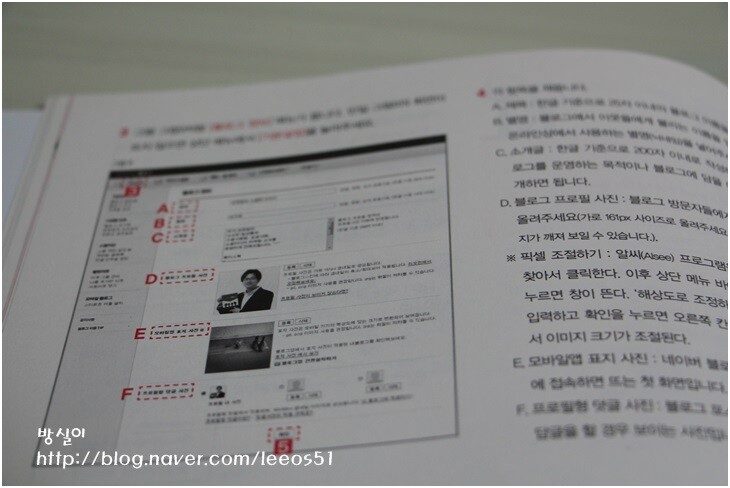 사진과 함께 숫자나 알파벳으로 표기를 해서 그에 따른 설명을 자세하게