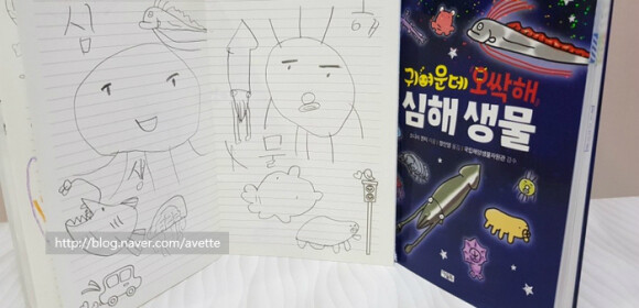 아이가 그렸더니 심해생물도 넘나 귀엽네요. ㅎㅎ