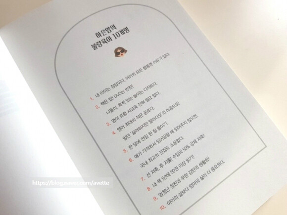 책의 첫 머리에는 하은맘의 불량육아 10계명이 있는데