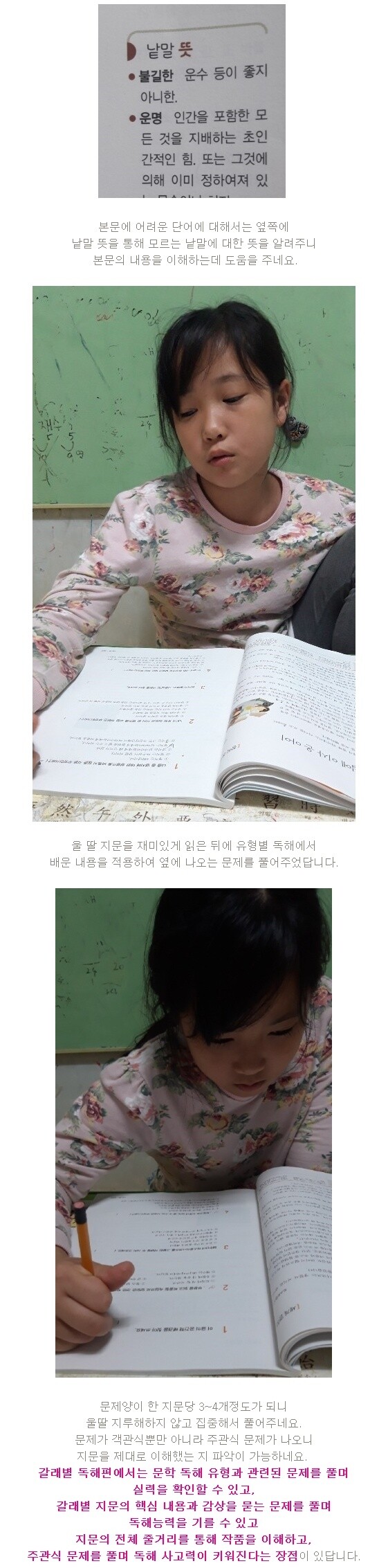 한글해석이 없이 영문장만 나와 있으니 좀 어려워 했답니다.