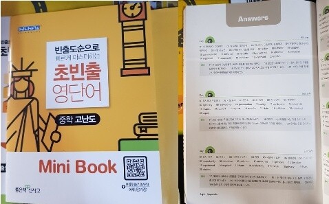 초빈출 영단어 중학 고난도는 본책과 초빈출 영단어 미니북, 답안지로