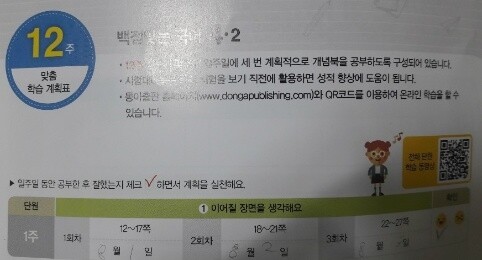 학습계획표가 8주와 12주완성 두가지로 되어 있어서