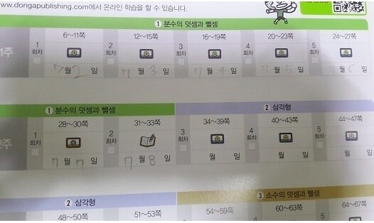 학습량이 많지 않아 울 딸 힘들어하지 않고 잘 풀어주고,