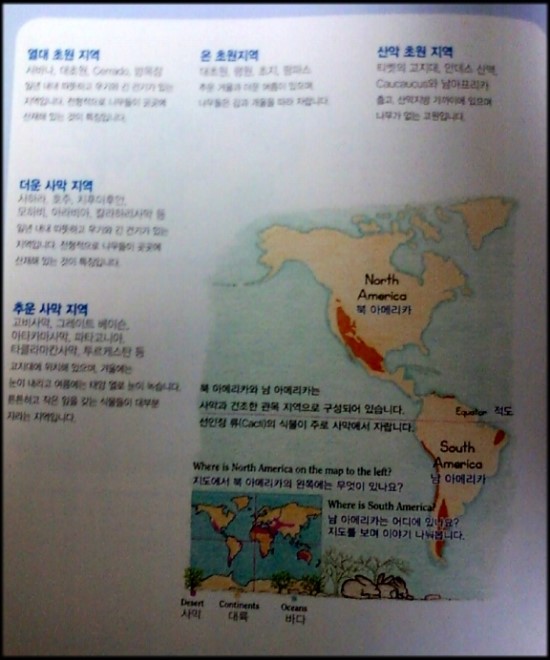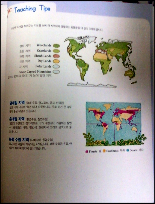 마지막장에 Teaching Tips에서는 다양한 지역을 보여주는 지도를 보며 각 지역의 기후의 특성을 알려주고 자세하게 알려주고 있어서, 엄마가 미리 알고 있다가 아이들과 각 지역에서 생활하는 동물들에 대해 이야기 할때 각지역의 특성을 알려주면 너무 좋을 것 같아요.