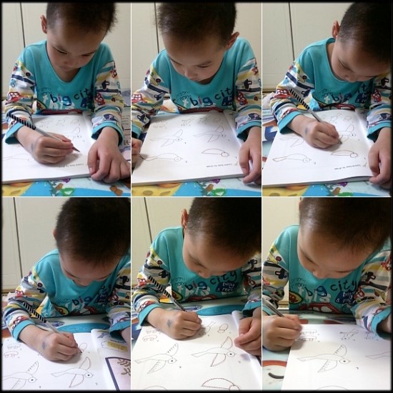 옆에 새 그리는 방법을 보더니 “엄마~! 나 새 그려볼래.” 하고 연필을 가지고 오네요. 먼저 소주제 그리기(Draw the subject)를 먼저해보았답니다. 새를 못그리는 울 아들 점선으로 그려진 동그라미와 반원, 사다리꼴을 점선을 따라 그렸답니다. 아이들이 그리기 어려운 새를 점선을 따라 그리다 보면 어느새 새를 쉽게 그릴 수 있게 되네요.