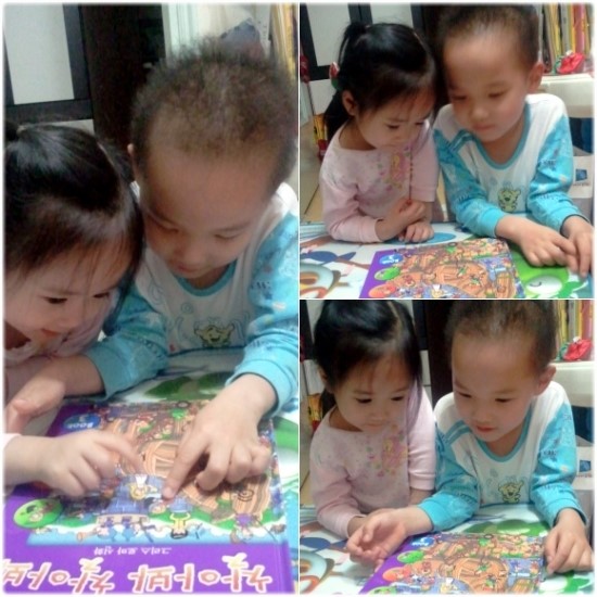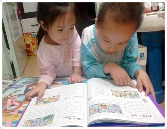 그리고, 책상 앞에 앉아서 '우주선-꼬마 우주선 로키와 함께 우주탐험'을 읽었답니다. 글씨가 크고 글씨가 많지 않아서 울 아들 혼자서 읽겠다고 하더라구요. 오빠가 책을 읽자, 오빠 옆에 앉아서 같이 책을 보는 울 딸.. 둘이 너무 즐겁게 책을 보았답니다. 책을 보면서 울 아들 그림이 너무 귀엽고 재미있다고 좋아했답니다. 그림 색도 원색적이라서 아이들의 눈에 확 들어오는 그림이네요. 우주를 표현한 그림들이 참 이뻤답니다. 이야기을 보면 장난감을 어질러놓고 잠을 자는 희수, 어지러진 장난감 속에서 깨어난 우주선 로키가 희수에게 장난감 정리를 안해서 빠져나오는데 시간이 걸려서 희수때문에 늦었다고 화를 내고, 로키가 창문을 열어달라는 말에 희수는 창문을 열자, 로키는 창문 밖으로 휙 날아올랐고, 희수의 잠옷자락이 로키의 날개에 끼게 되어 함께 우주 여행을 떠나 친구들을 만나고 왔다는 이야기네요. 울 아들과 딸 이야기를 다 보더니, "엄마~! 난 장난감 정리 잘 할거야.." 하고 물어보지도 않았는데 이야기를 하네요..^^ 역시 책의 효과는 정말 큰 것 같아요. 아이의 안 좋은 버릇을 고칠 수 있게 도와주니 말이예요.. 아이들이 꿈꾸는 우주는 어떤 것일까요?