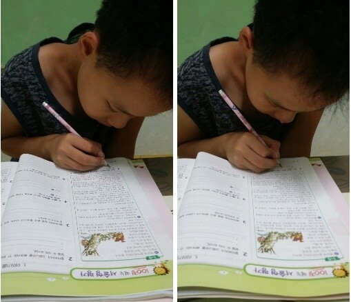 학원에서 영문법을 배우게 되자, 머리가 아프다면서 힘들어 하네요.