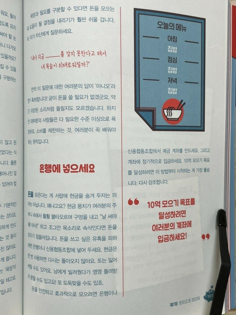 갖고 있는 돈은 가지고 있지말고 은행에 넣어서 돈쓰고 싶은 유혹을 피하고 잃어버리지 않기를 제안한다.