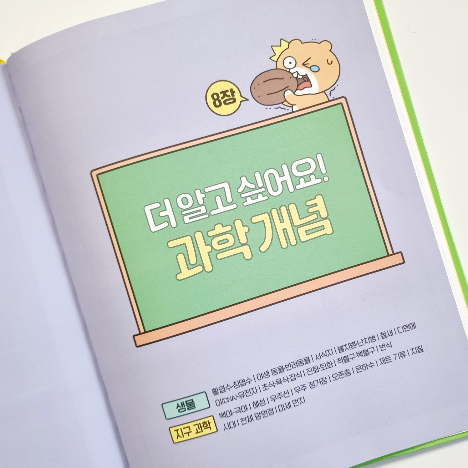 과학에 나오는 개념어를 모아놓은 8장에서는교과 지식과 일반 상식을 모아서 설명해주고 있어서 읽어보면 좋아요.
