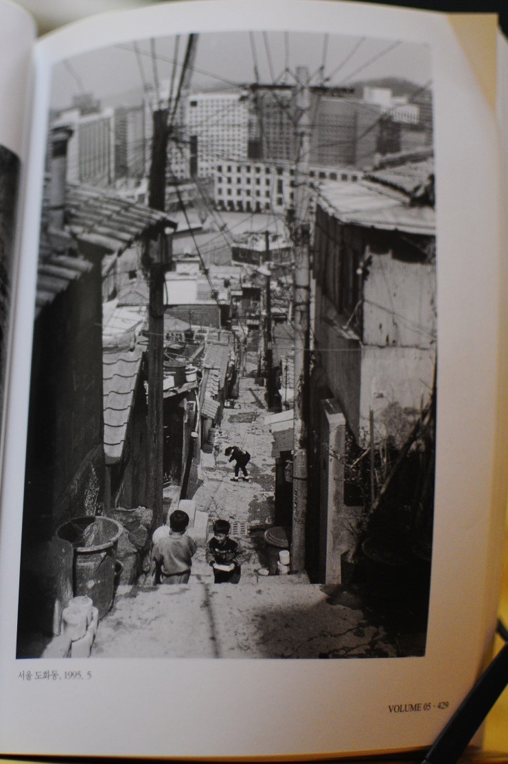 그때도 다양한 사진집이 꽂혀 있었는데, 그 중에 눈에 띄는 것이 <골목안 풍경 전집>입니다. 다른 사진집에 비해 두께와 무게 면에서 압도적으로 두껍고, 무거워서 눈길이 갔습니다. 이 책을 집어 들고, 책장을 찬찬히 펼치면서 김기찬 작가님의 시각으로 본 골목안 사진을 바라보았습니다. 이렇게 골목안 모습에 매료가 되어 40분 동안 책장을 넘기면서 사진을 바라보았는데, 배고픔과 피곤함을 느껴서 시계를 보니 시간이 꽤 지났습니다. ‘이제 몸도 피곤 하니, 집에 가면서 사진들을 봐야지’라는 맘을 품고 책 뒷면 가격을 확인했는데, 그 자리에 다시 책을 놓았습니다. ‘선생님, 나중에 꼭 다시 와서 볼께요.’ 라면서