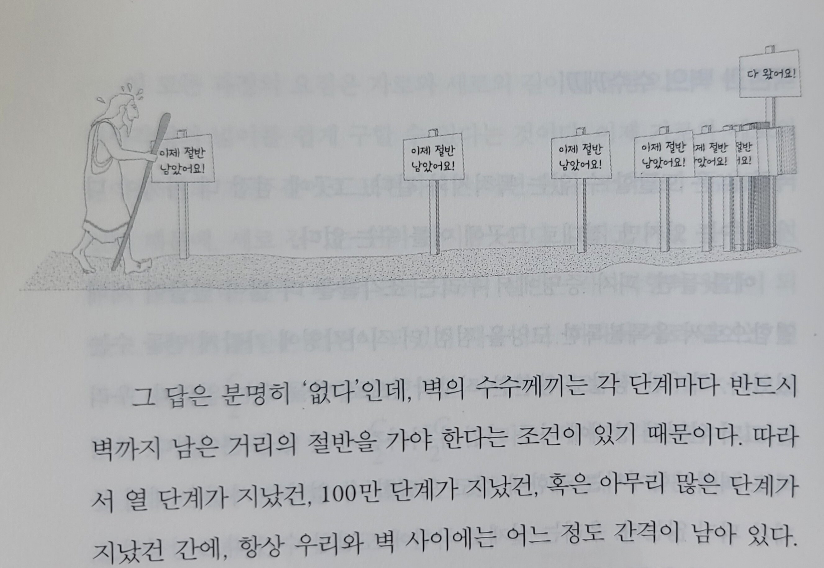 '제논의 역설'에서 설명하는 아킬레스와 거북 역설을 떠올리게 했습니다.