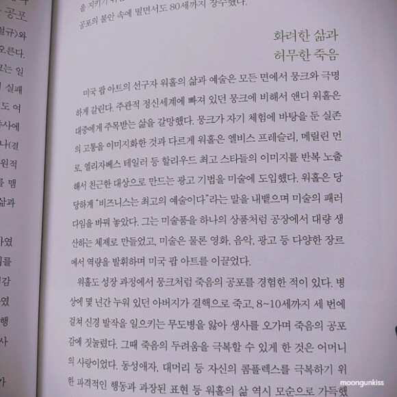 20세기를 대표하는 예술가인 앤디 워홀이나, 절규라는 작품으로 유명한 뭉크의 이야기도
