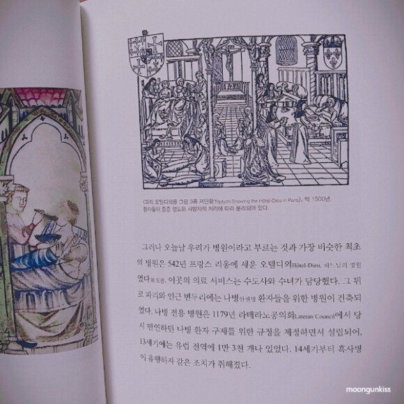 예전에는 병원이라는 개념이 없고 아픈 사람들은 집에서 치료하는 경우가 많았다. 지금과 비슷한 병원이라는 개념은 거의 천년 전에 생긴 것이라고 하니, 의학이 발달은 참 더딘 것이라고 생각이 들었다.