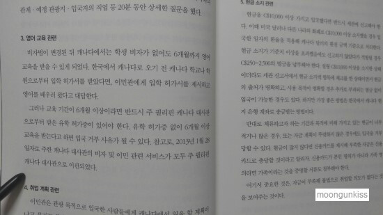 여권을 만드는 방법부터 영어를 어떻게 배우면 좋은지 캐나다에서 취업을 할 수 있는 방법도 알려준다.