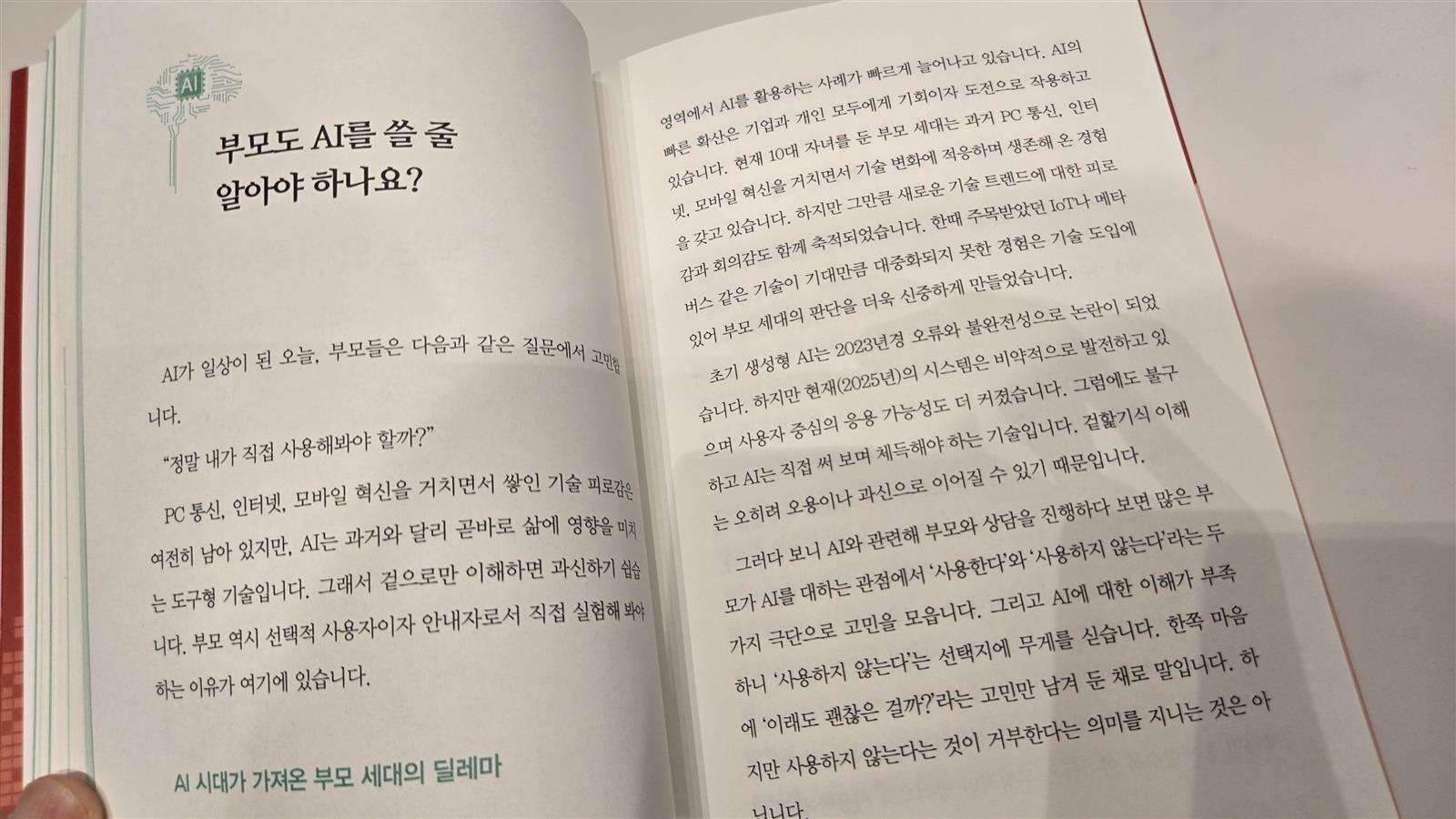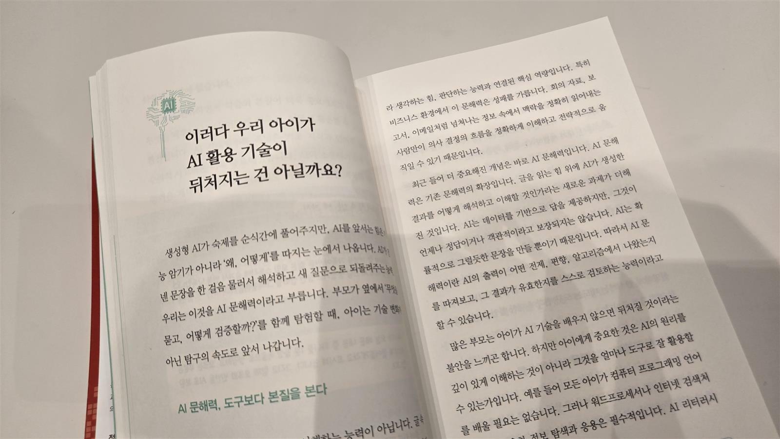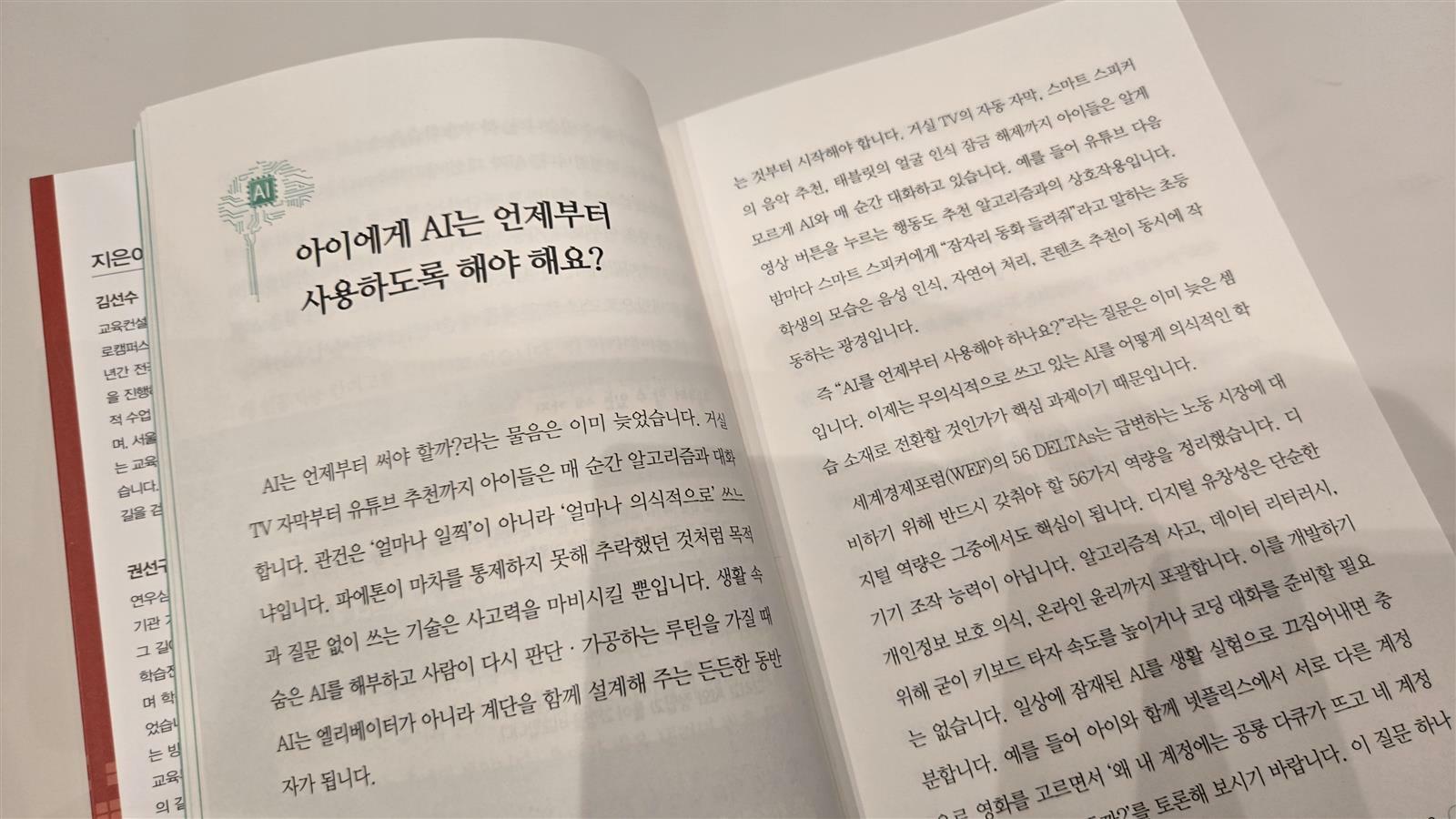 마지막 장은 성적이 아니라 ‘관계’에 초점을 맞춥니다. AI를 친구처럼 대하고, 속마음을 챗봇에게 털어놓는 아이를 보는 부모의 막막함을 다룹니다. 저자들은 아이가 디지털 친구를 갖는 현실을 부정하지 않습니다. 대신 AI의 정체성과 한계를 아이가 스스로 이해하도록 돕는 대화법, 윤리·공감·책임을 함께 생각하게 하는 구체적인 시나리오(거짓말, 친구 관계, 트롤리 딜레마 등)를 제안합니다.