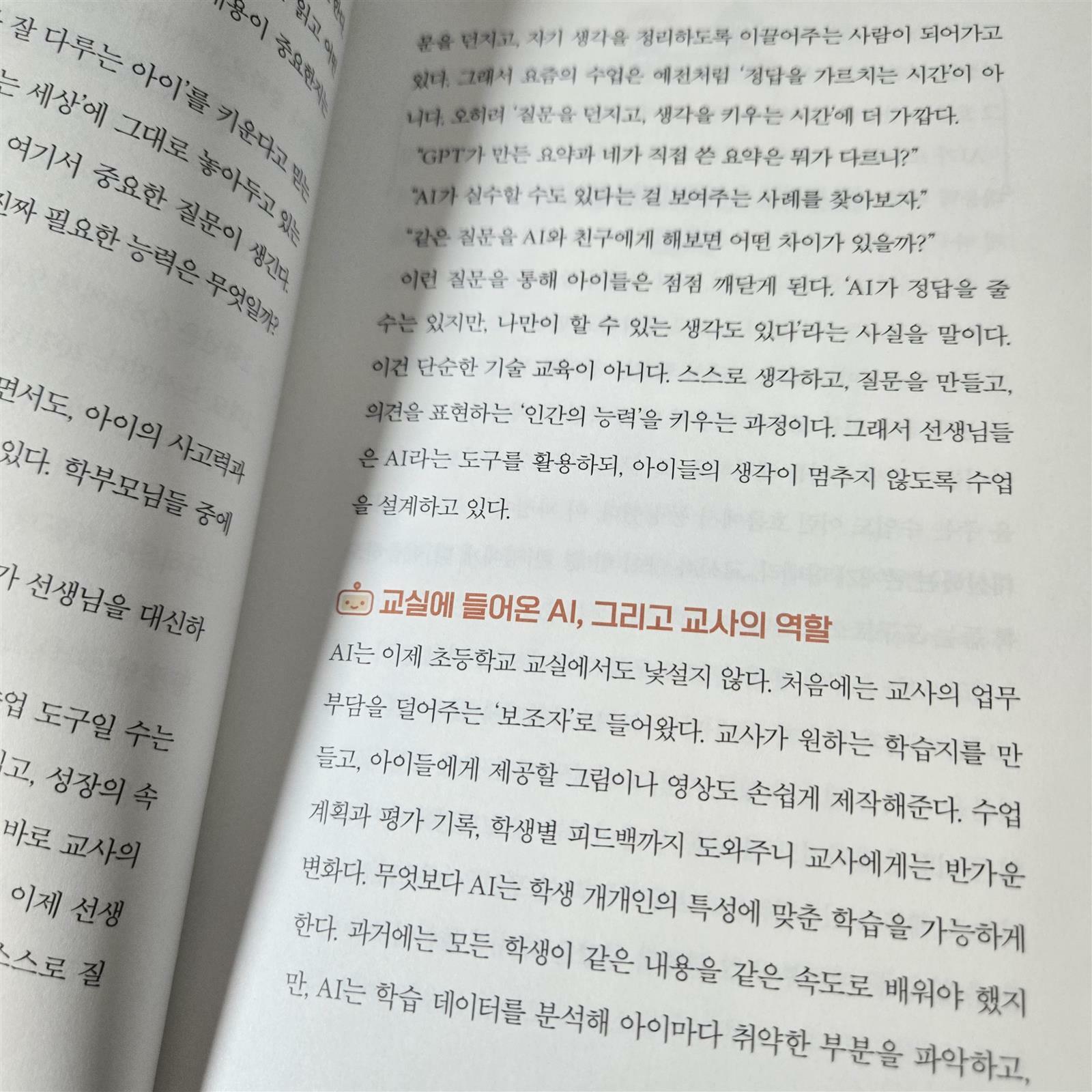 저자들은 AI 시대일수록 문해력과 글쓰기라는 전통적인 가치에 집중해야 한다고 역설합니다. 역설적이게도 AI와 잘 대화하기 위해서는(Prompt Engineering) 인간이 가진 언어의 힘이 정교해야 하기 때문입니다. 책은 GPT와 같은 도구가 창의력을 해치는 것이 아니라, 오히려 아이의 생각을 구체화하는 템플릿이 될 수 있음을 보여주며 이를 활용한 독해력과 글쓰기 교육법을 친절히 안내합니다.
