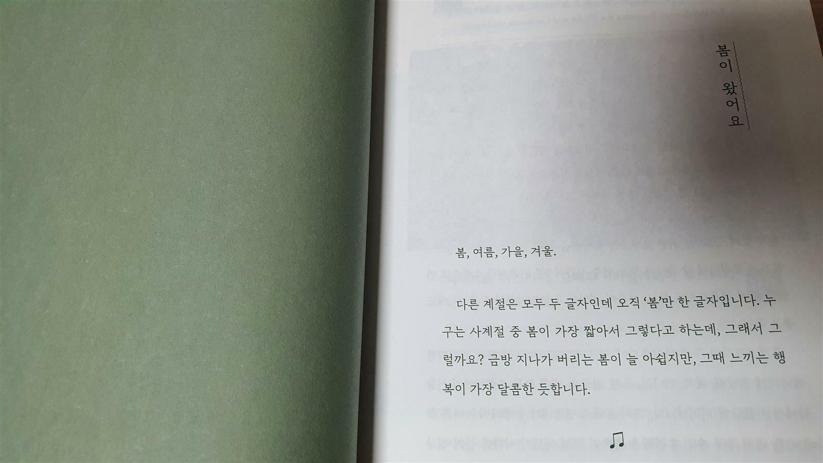 봄이 왔을 때, 아침일 때, 시작의 설렘을 느낄 때, 꽃을 마중할 때, 산책할 때, 사랑이 머물 때 등