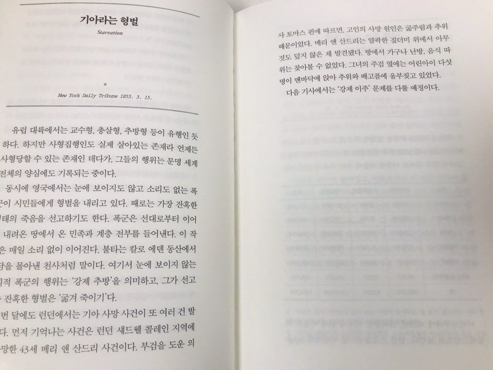 이 책에 실린 많은 기사 중에 '기아라는 형벌'에 대한 기사를 그대로 인용해본다.