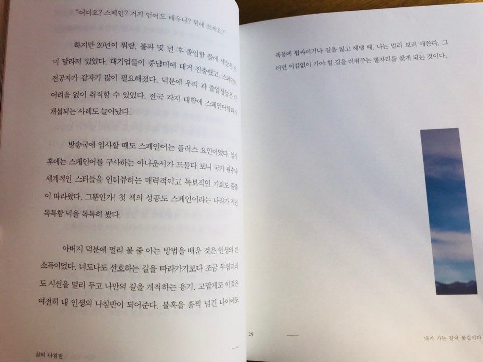 나는 아직도 KBS  아나운서 자리를 포기한 그 대의 선택을 후회하지 않는다. 인생에는 수많은 갈림길이 있고, 어느 누구도 그 모든 길을 걸을 수는 없다. 진부한 표현이지만 얻는게 있다면 잃는 것이. 잃는 것이 있다면 얻는 것이 있기 마련이다. 다만, 우리에게는 기회가 있다. 가지 않은 길을 마냥 부러워하거나 동경하며 살아갈 것인지, 아니면 내가 선택한 길을 더 좋은 길로 만들기 위해 노력할 것인지를 선택할 기회 말이다. 나는 유달리 용감한 사람도, 불안을 모르는 사람도 아니다. 하지만 도전에는 두려움과 불안이 동반된다는 사실을 받아들이고, 그것을 감내하기로 마음먹었을 뿐이다. 그렇다. 행복의 비결은 많은 것, 혹은 좋은 것을 손에 넣는 것이 아니라 포기할 것을 확실히 아는 것이다. 다시 말해 이미 잘 가꿔진 꽃길을 찾아 걷는 것이 아니라, 내 앞에 놓인 길에 꽃씨를 뿌리고, 가꾸고, 이따금 우연히 발견하는 꽃들에 감사하는 것, 바로 그것일 테다. _ 남들과 다른 길을 간다는 것 중에서
