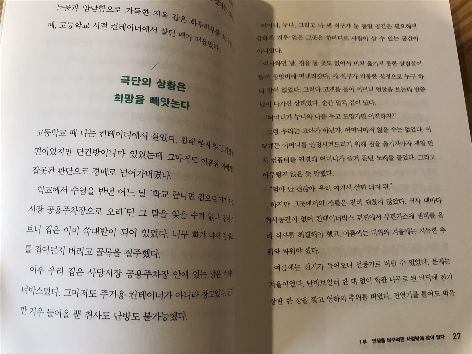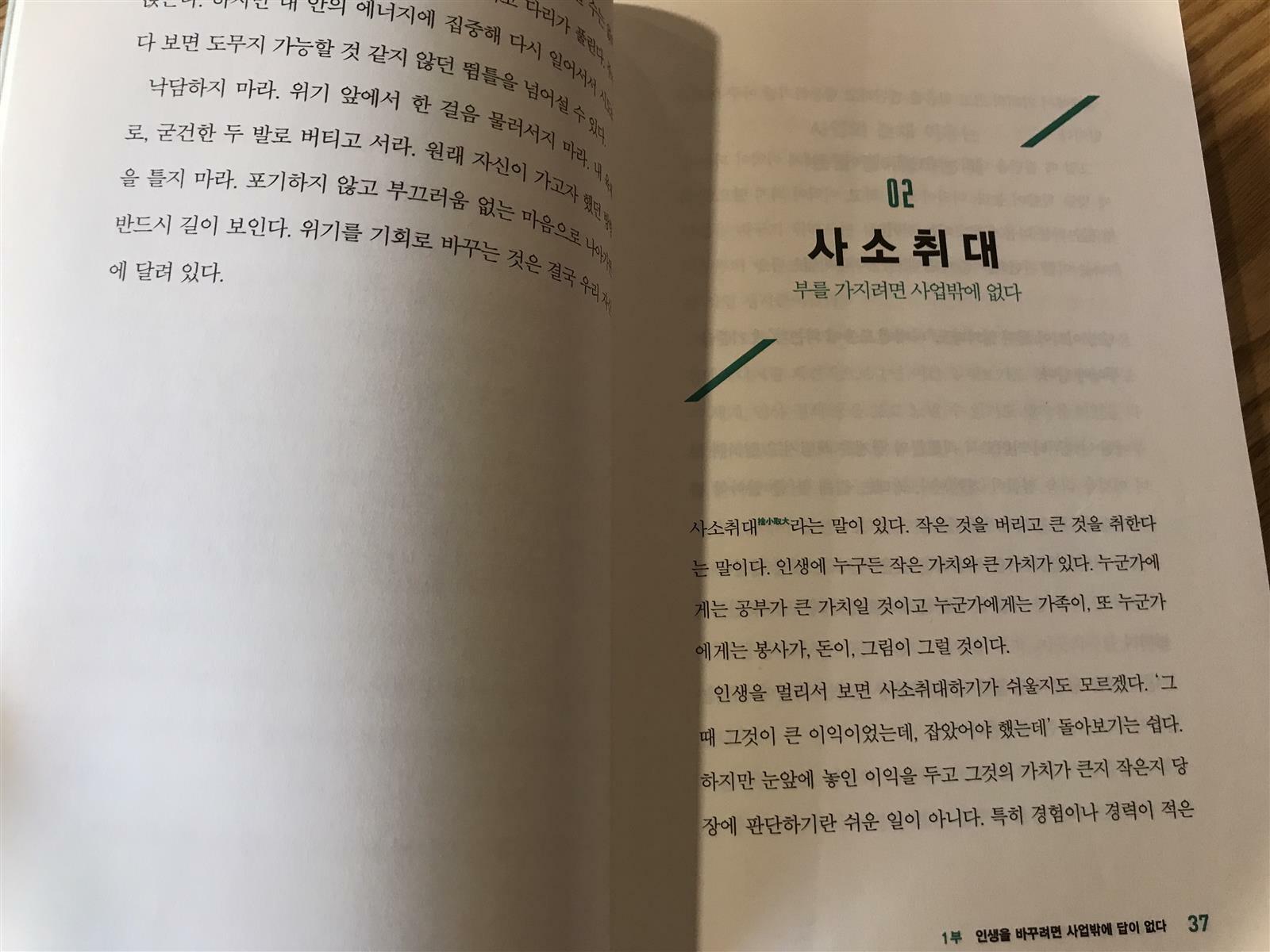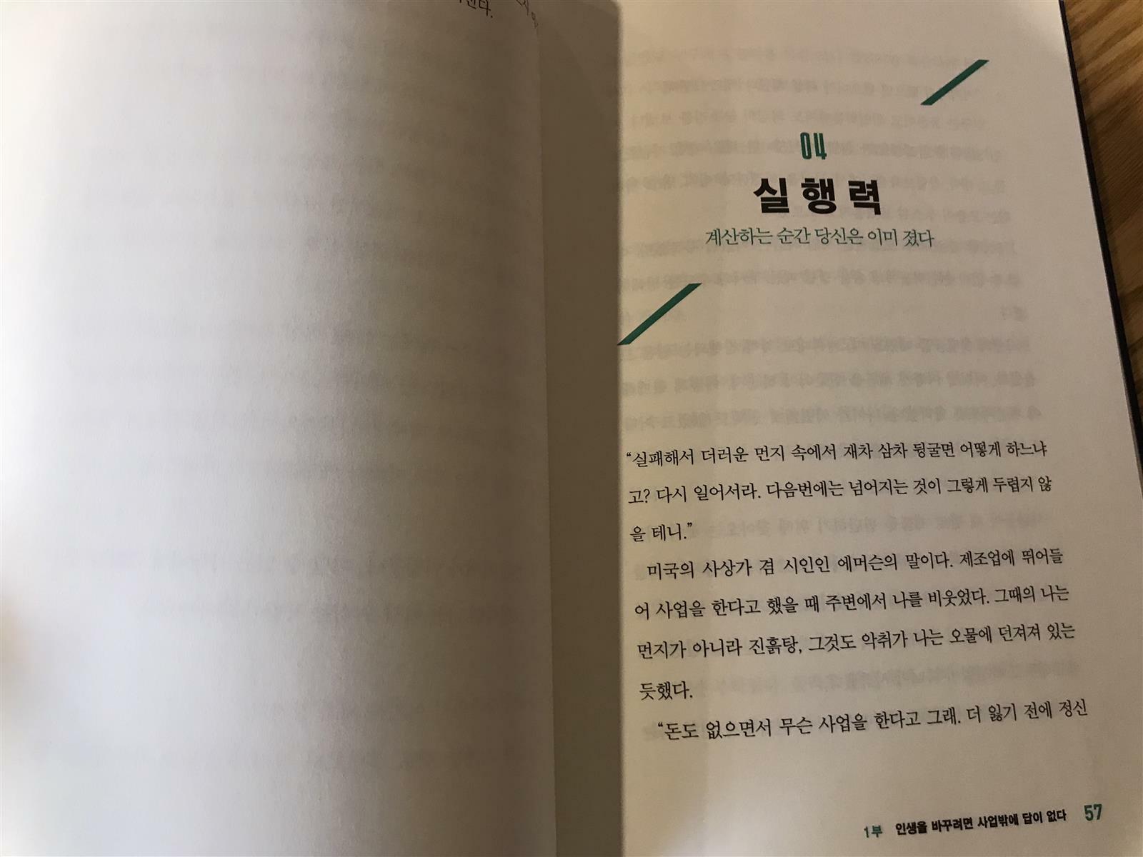 1부에서는 인생을 바꾸려면 사업 밖에 답이 없다라는 이야기로 시작한다.