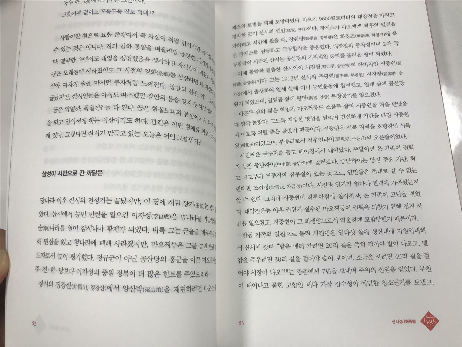 그럼에도 불구하고 각 지역의 뿌리 깊은 역사마저 탈색시킬 수는 없다. 삼천만 산시인들은 팔백리 진천에서 민요 진강을 노래하고, 팔천만 쓰촨인들은 유비와 제갈량이 세운 촉나라를 자랑스럽게 여긴다. 각 지역의 약칭 속에 녹아 있는 역사는 여전히 지역민들에게 강한 정체성을 불어넣어준다. _6쪽  머리말