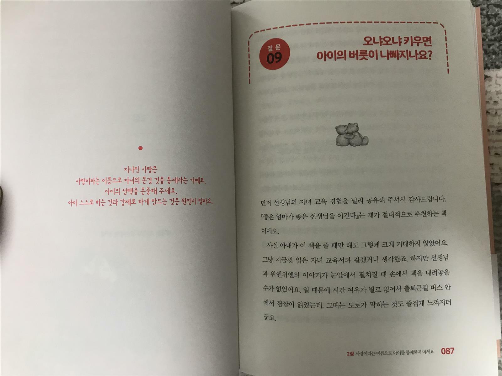 사랑의 본질은 자유, 관용, 칭찬이지만 오냐오냐의 본질은 통제, 독단, 비판이에요. 오냐오냐하는 것은 사랑이 아니에요. 두려움과 불신의 심리를 숨긴 채 사랑이라는 외투를 입고 자녀를 소유하고 통제하는 것이에요 _93쪽