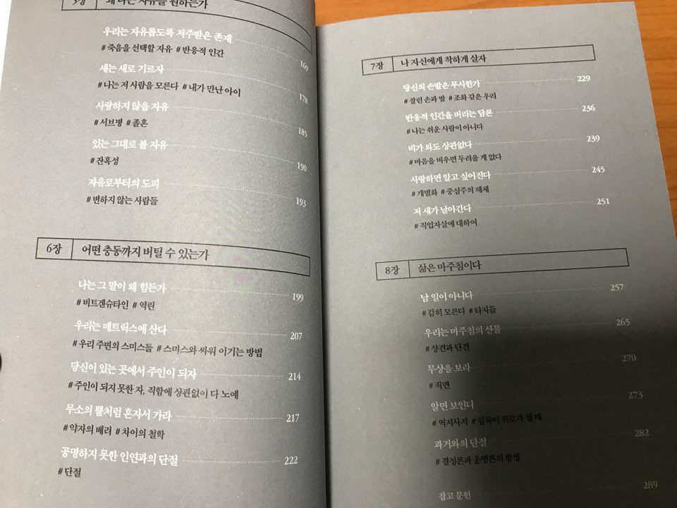 철학이 내게 준 것들로 오늘도 간신히 살아가고 있다. 일상으로 흘려보낸 것들을 다시 들여다본다. 그리고 평범이라 치부했던 일상에 비범이라는 이름표를 다시 붙여주었다. 나를 움직이게 해준 철학이 고맙다. 이 고마운 철학에게 나는 다짐한다. 질문을 멈추지 않을 것이며, 내 생을 다시 붙잡을 것이라고. 무엇을 하든 자발적 선택을 할 것이며, 혹여나 비련한 아우성 속에서 다시 질식하더라도 이제는 용기를 잃지 않을 것이라고 말이다. _ 288쪽에서