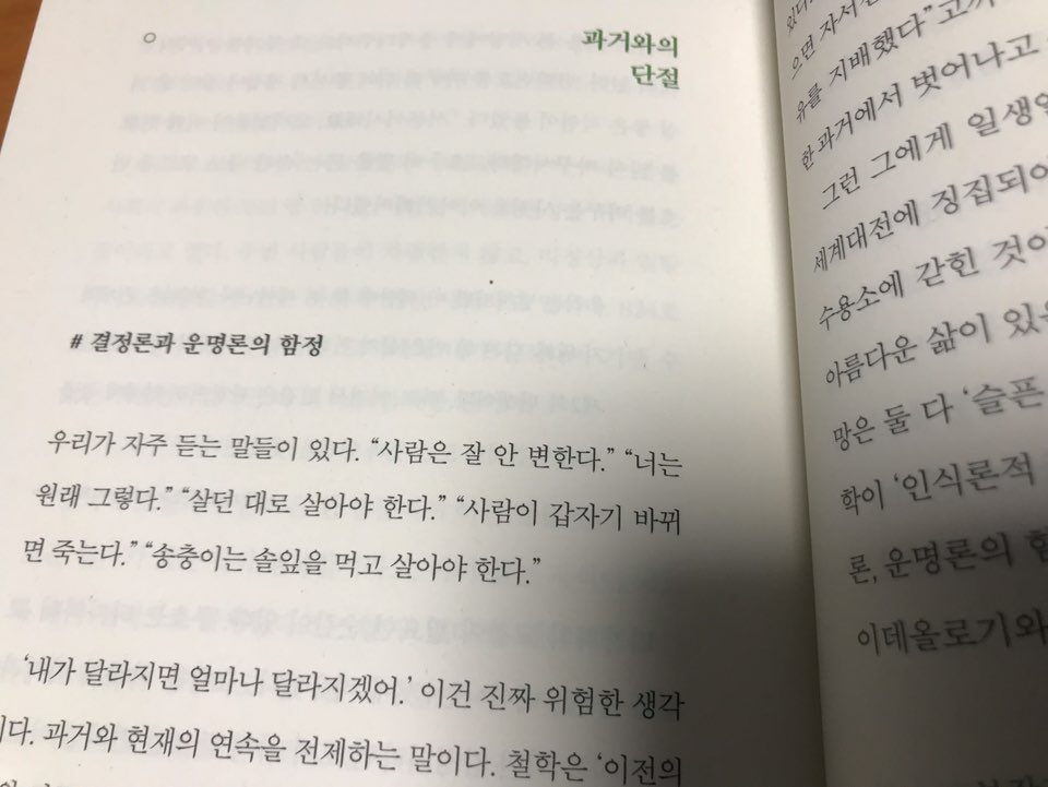 철학은 눈물나는 자각과 함께 처절한 반성, 그리고 작은 실천을 하게 만들어주었다고 말한다.