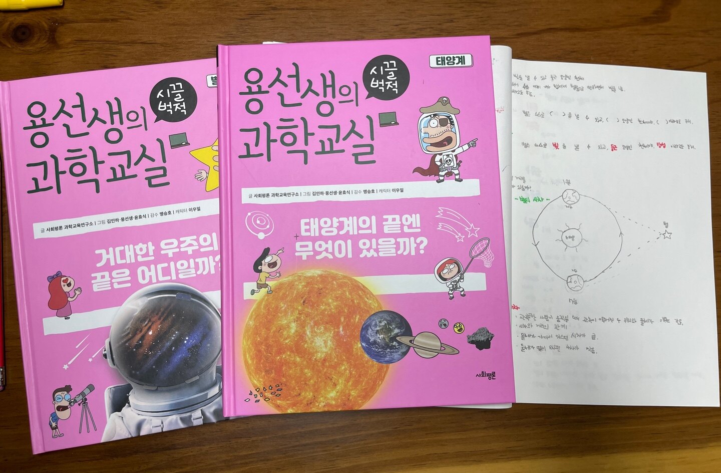 신나게 용선생의 시끌벅적 과학교실 책을 읽는 것 같아요.
