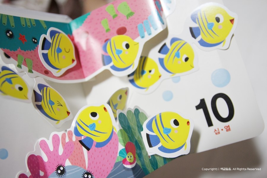 바닷속에 노랑 물고기가 열마리 둥둥~