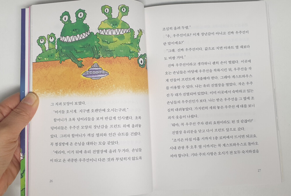 눈 뜨자마자 마저 읽어야 한다며 아침부터 찾아서 읽은 책. <외계인 게스트하우스>