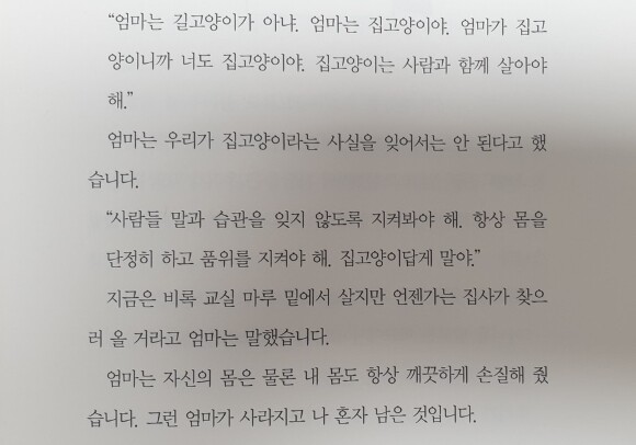 엄마의 지극한 보살핌과 엄격한 생존교육을 통해 길냥이처럼 살지않고