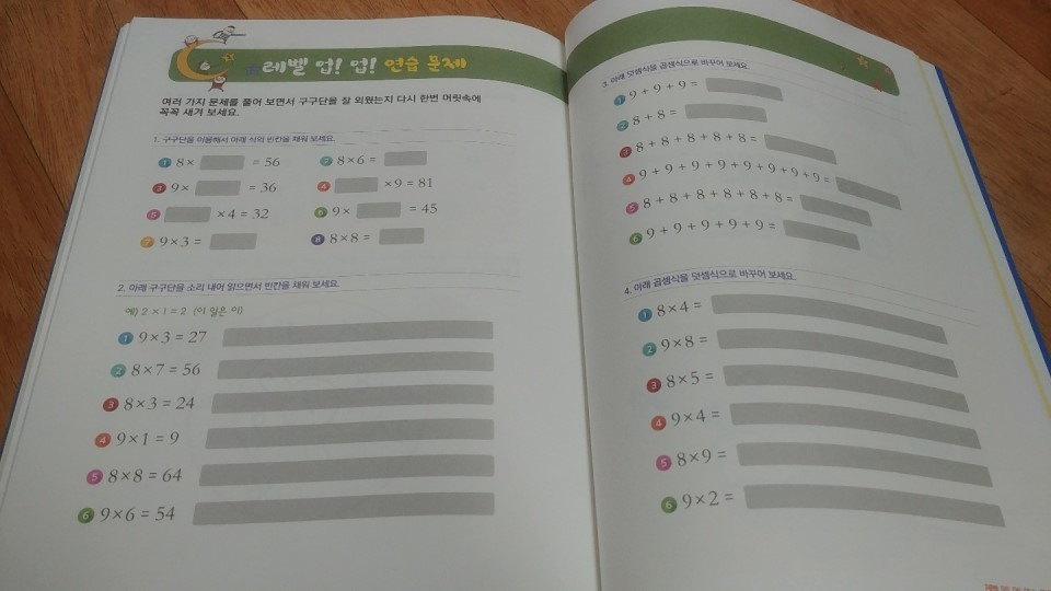 풀어놓은 책이 바로 이 레벨 업! 초등 구구단이다.