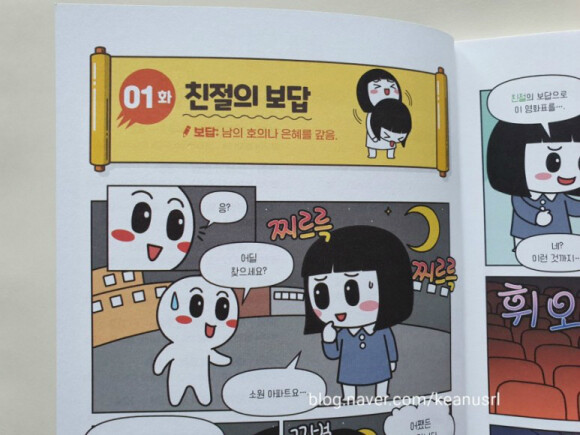 1화. 친절의 보답에 대한 이야기. 여기서 배우는 낱말은 '보답'이다.