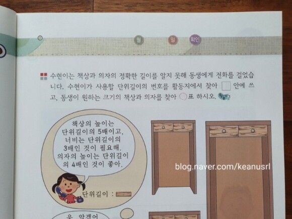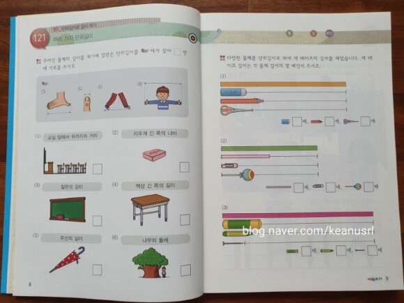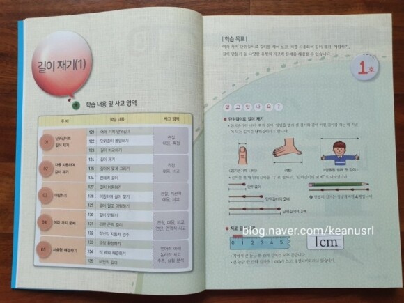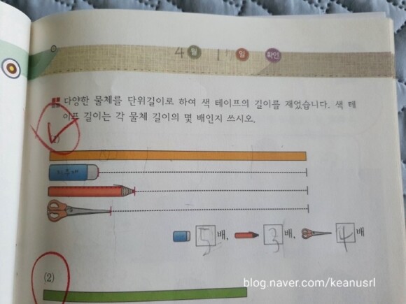 마침 얼마전에 기본 교과 교재에서 길이재기 단원을 하였는데,