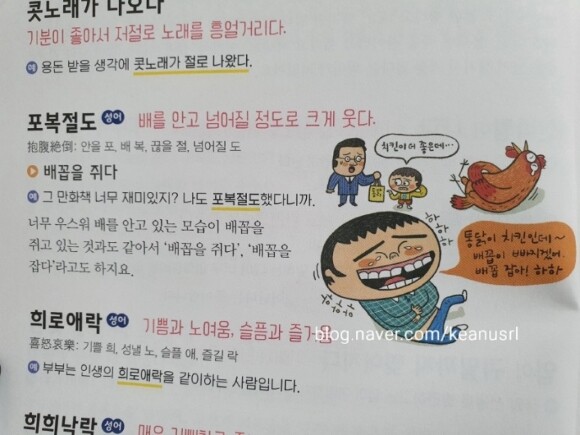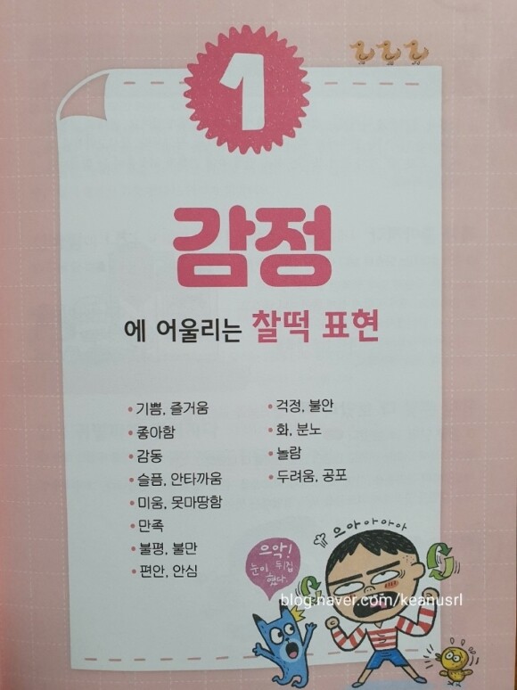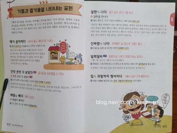만화 그림으로 표현된 표현들은 책의 내용을 지루하지 않게 해주고, 해당 표현을 더 재미있고, 이해하기 쉽게 알려준다.