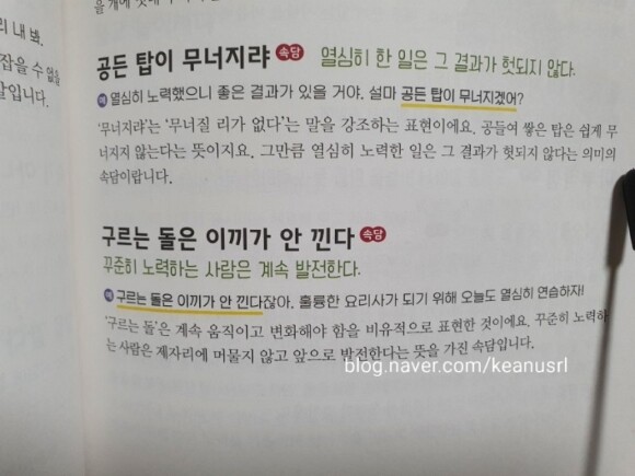 역시나 만화 부분을 위주로 보기도 했지만, 자기가 관심 가지고 있는 고사성어나 속담이 나오니 그 부분도 유심히 봤다.