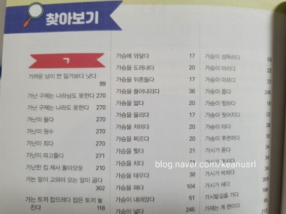 또는 뒤에 있는 찾아보기에 ㄱ,ㄴ,ㄷ 순서대로 표현들이 나오니 알고 싶은 표현을 골라 페이지를 찾아 읽어도 좋다.