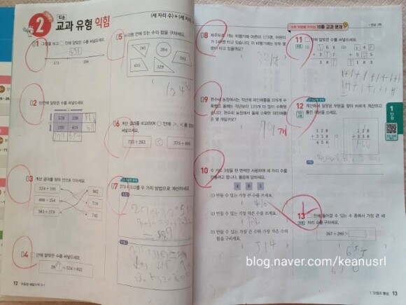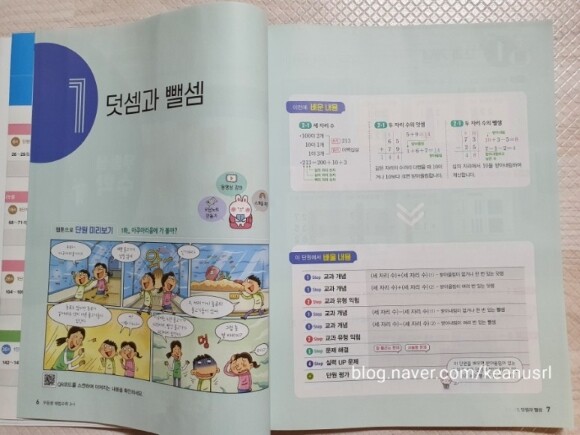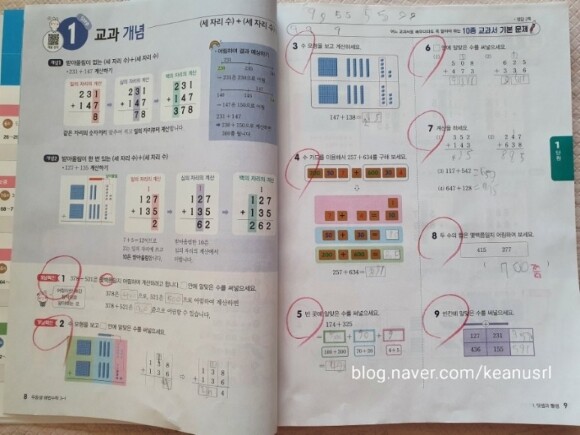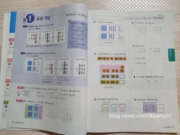1단원은 세자리수의 덧셈과 뺄셈이 나오는 부분이라 개념부분은 간단하게 읽고 넘어갔어요.