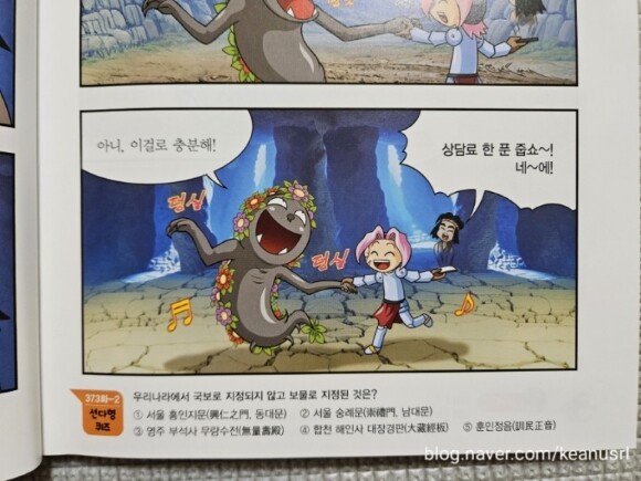 만화 내용 자체도 재미있지만 한 장 한 장 넘기면서 아래를 살펴보면 퀴즈가 보인다.