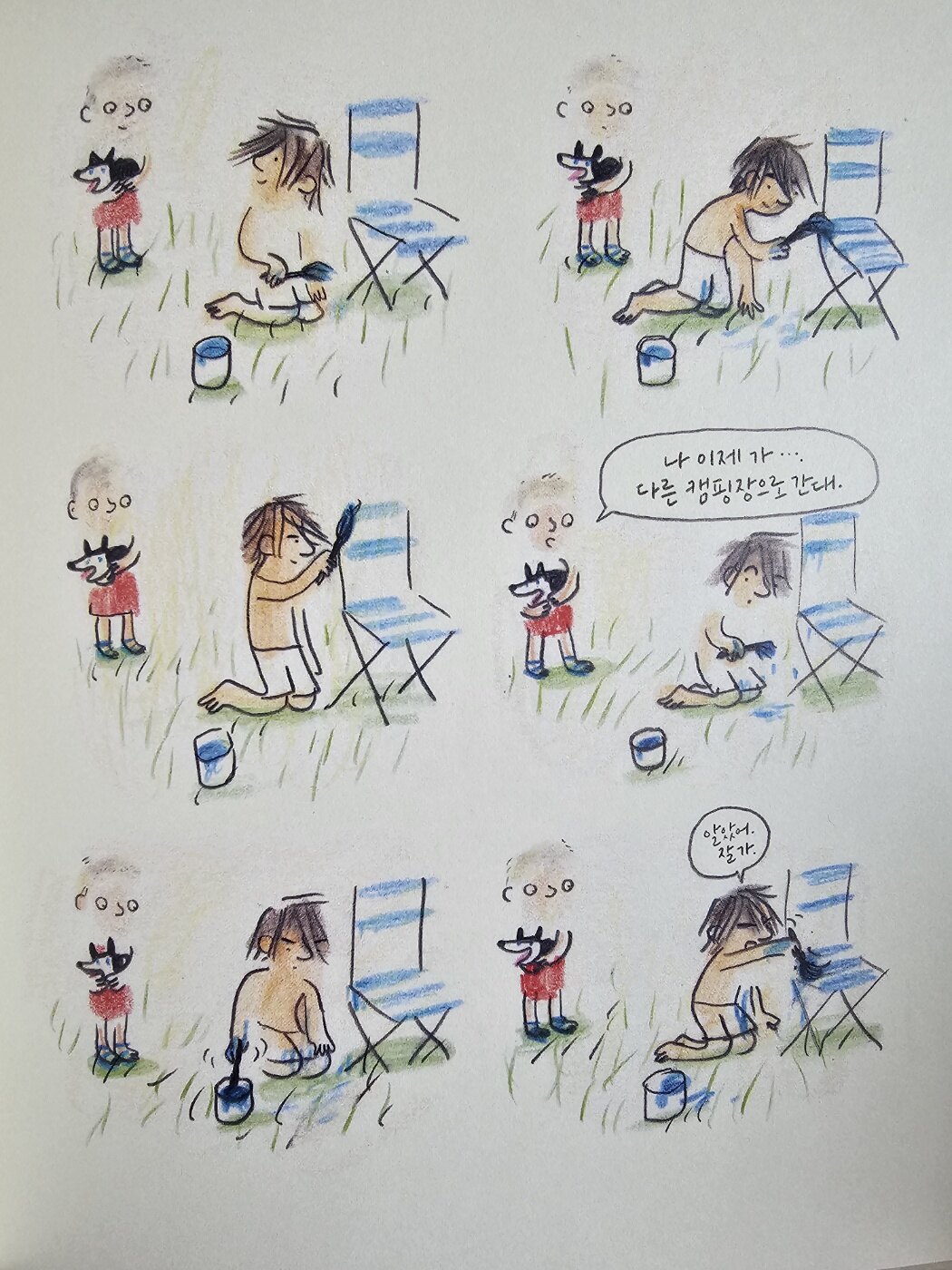 2021 볼로냐 라가치 미들그레이 코믹 부문 대상작으로 선정된 『메멧』 속 그림을 보며 잔잔히 펼쳐지는 그 여름 캠핑장의 행복한 순간을 눈과 마음에 담아보았다. 특히나 서로를 위하는 아이들의 따뜻한 마음이 정말 감동적이었다. 완벽함과 긴 설명이 아닌 여백이 많은 글과 그림으로도 충분한 감동을 주는 아름다운 동화책이다.