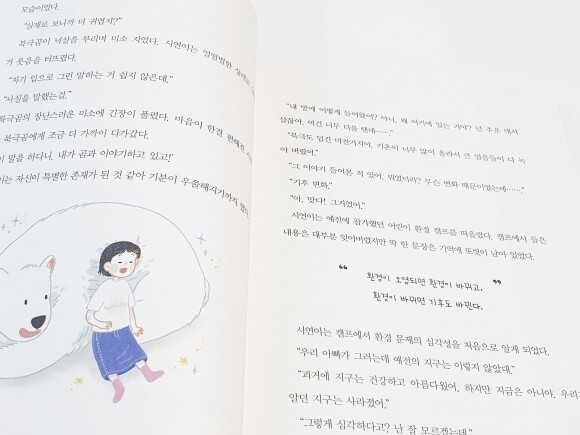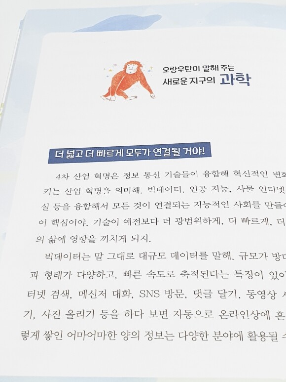<내일의 지구를 기대해>는 환경, 교육, 직업, 과학 그리고 민주주의에 대해 깊이 있게 다룬 책이다. 딱딱하게 정보만 나열되어 있다면 많은 아이들이 책을 읽는 것을 포기할 것 이다. 그래서 재미와 정보의 균형이 잡힌 이 책이 더욱 반가웠다.